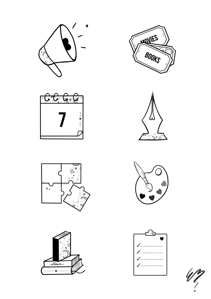 Les dessins sont classés par style, puis par ordre chronologique de réalisation. (Ceux sous lesquels il est écrit formation en DP ont été réalisés exclusivement pour mes cours, avec parfois des règles spécifiques à appliquer. Et ceux sous lesquels il est écrit commission sont des commandes que l’on m’a passées. Si l’illustration est rattachée à un livre, lorsque celui-ci est sorti, vous pouvez cliquer sur le « + » et le découvrir.)